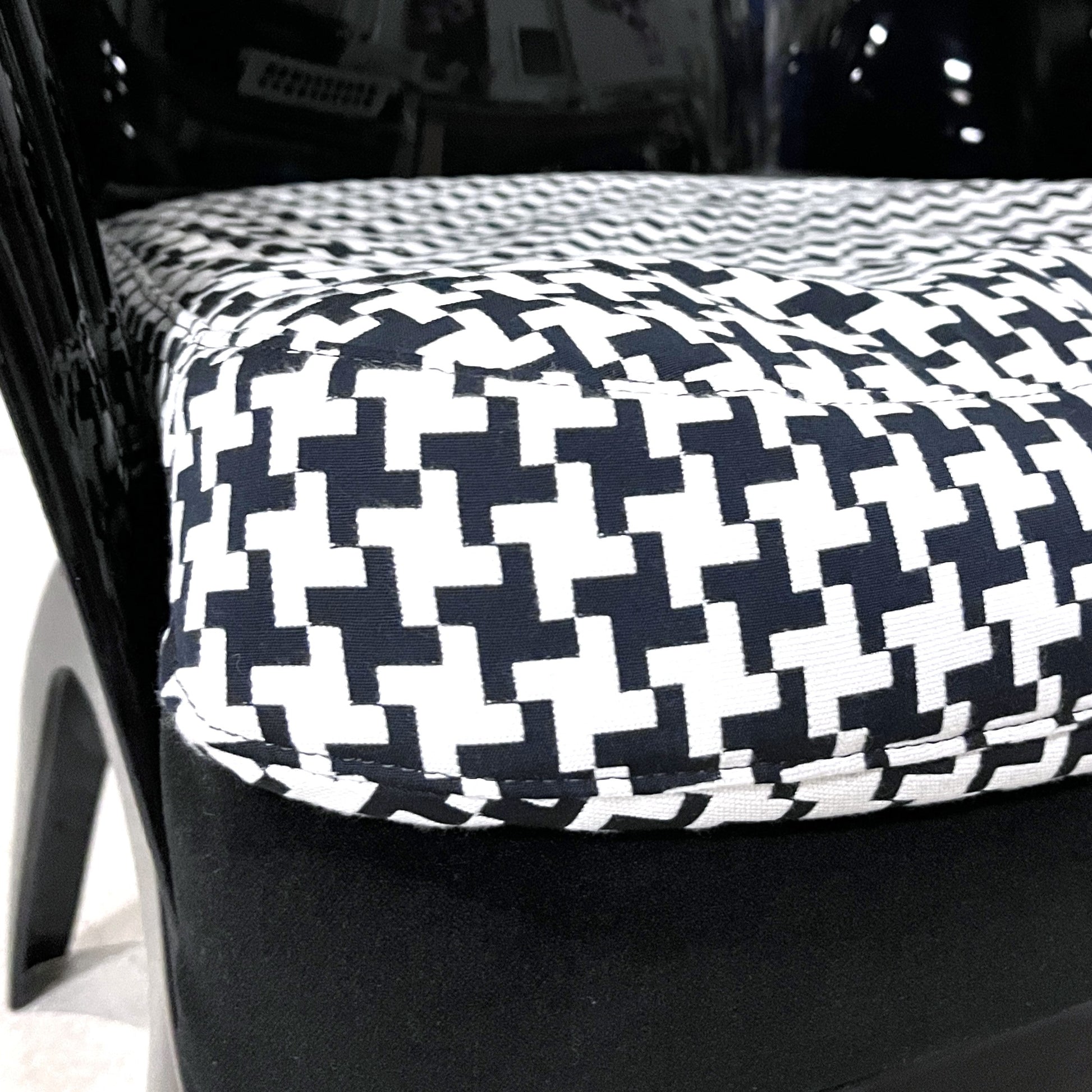 Condition: Like-new; includes two cushions (houndstooth and black velvet)