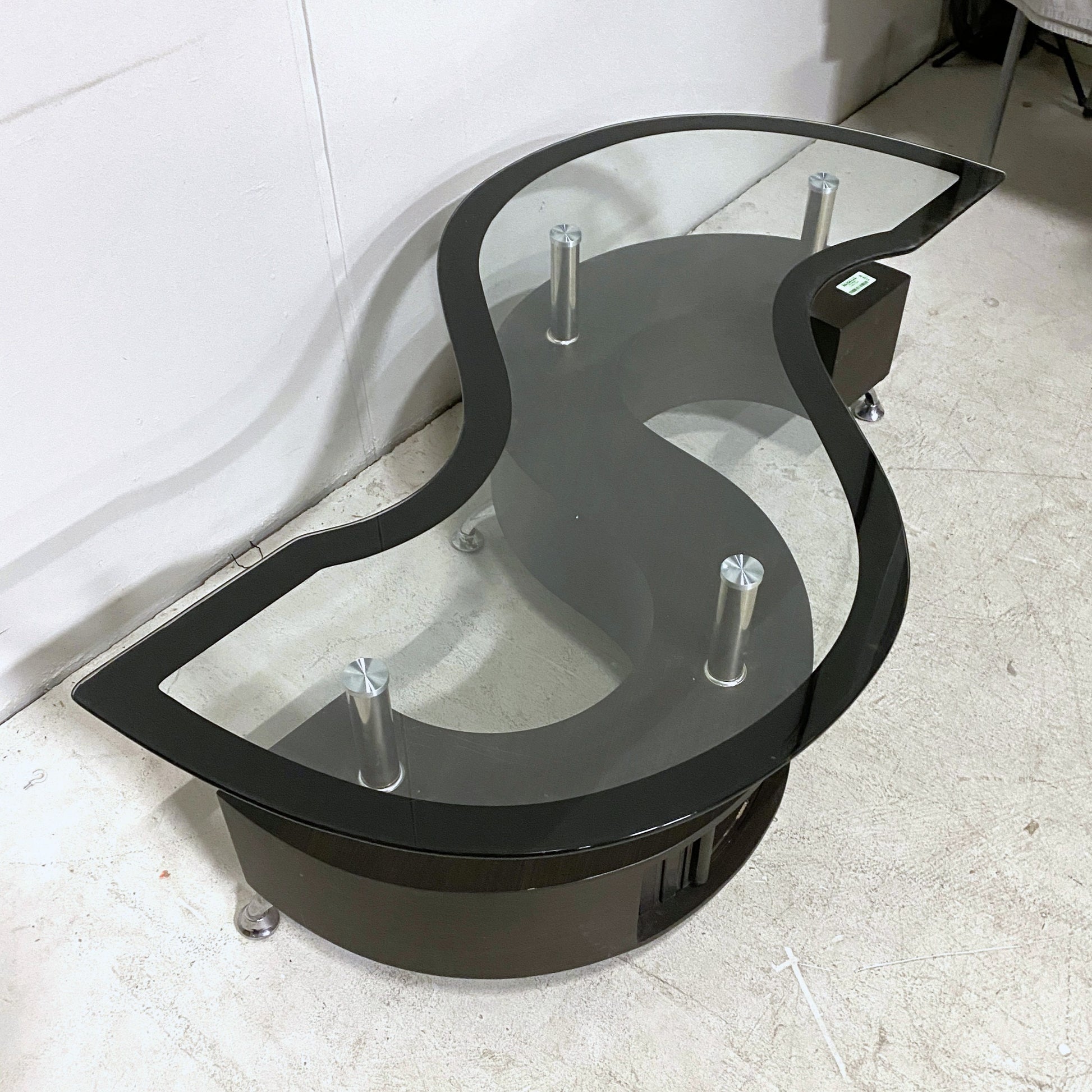 - Glass tabletop with black edges